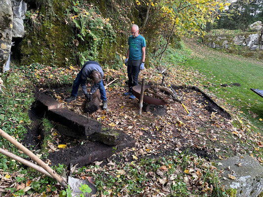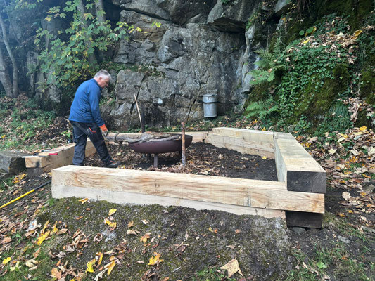 Sanierung der Grillstelle im Täli. Leider gibt es entweder Beton, welcher kälte- oder hitzeresistent ist. Deshalb hat sich die gemauerte Grillstelle in ihre Bestandteile aufgelöst.